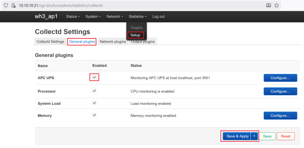 # opkg install collectd-mod-apcups # opkg install luci-app-statistics